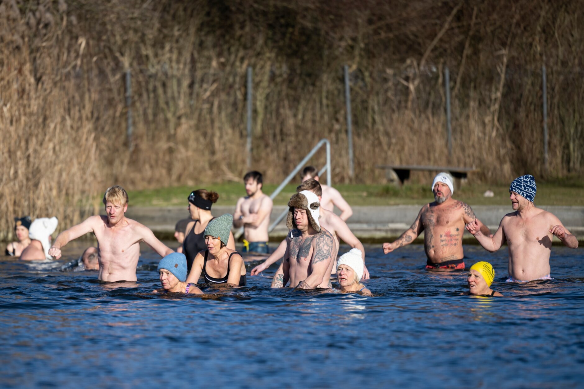 New Year's Eve Switzerland Swimmers enter the water during the traditional Sylvester swim at lake Moossee in Moosseedorf, Switzerland, Wednesday, Dec. 31, 2025. (Anthony Anex/Keystone via AP)