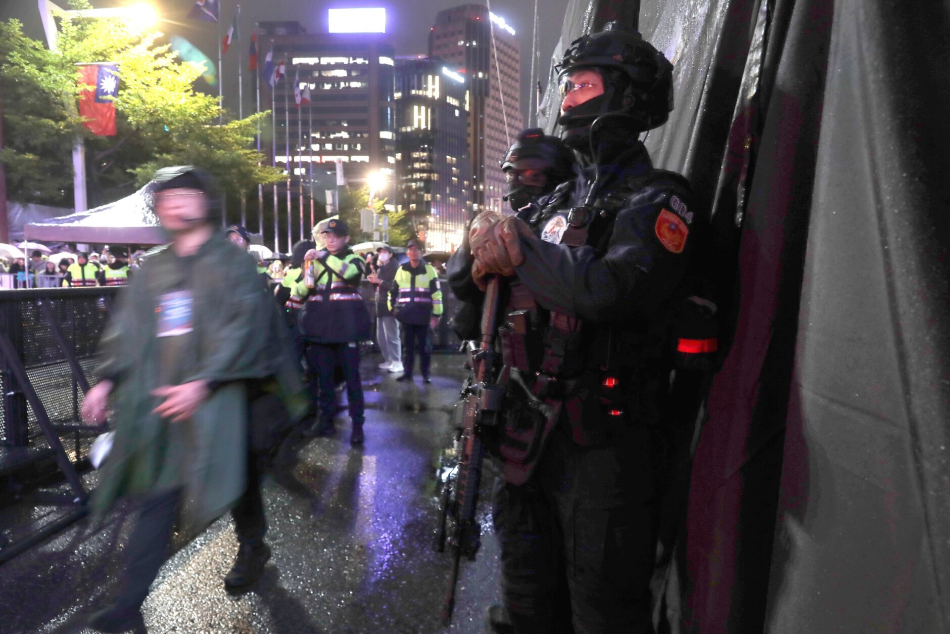 New Year''s Eve Taiwan The police stand guard during the 2026 Taipei New Year's Party celebration in front of the Taipei City Government Building in Taipei, Taiwan, Wednesday, Dec. 31, 2025. (AP Photo/Chiang Ying-ying)
