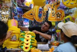 Peru New Year A vendor sells New Year's eve party goods at a market in downtown Lima, Peru, Tuesday, Dec. 30, 2025. (AP Photo/Guadalupe Pardo)