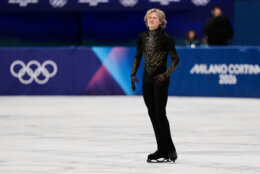 Malinin decided to practice early in the day at U.S. Figure Skating’s alternate training base in Bergamo, just outside of Milan, allowing him to escape the Olympic bubble and avoid having to sit in the arena all night. And he was the picture of calm throughout his warmup, never once falling in all of his practice jumps while wearing his glittering black and gold ensemble.