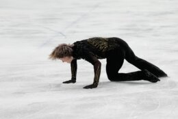 Malinin only doubled a planned quad loop, throwing his timing off. He fell on a quad lutz, preventing him from doing the second half of the quad lutz-triple toe loop combination that would have earned him big points. And in his final jumping pass, which was supposed to be a high-scoring quad salchow-triple axel, Malinin only could muster a double salchow — and he fell on that.