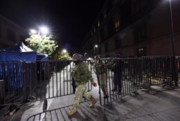 Meanwhile, heavily armed Mexican security forces kept up their battle with cartel gunmen following the killing that sparked a surge in violence and put the country on edge. Cartel fighters continued to block roads as smoke rose on the outskirts of the town in the state of Jalisco.