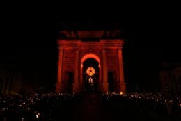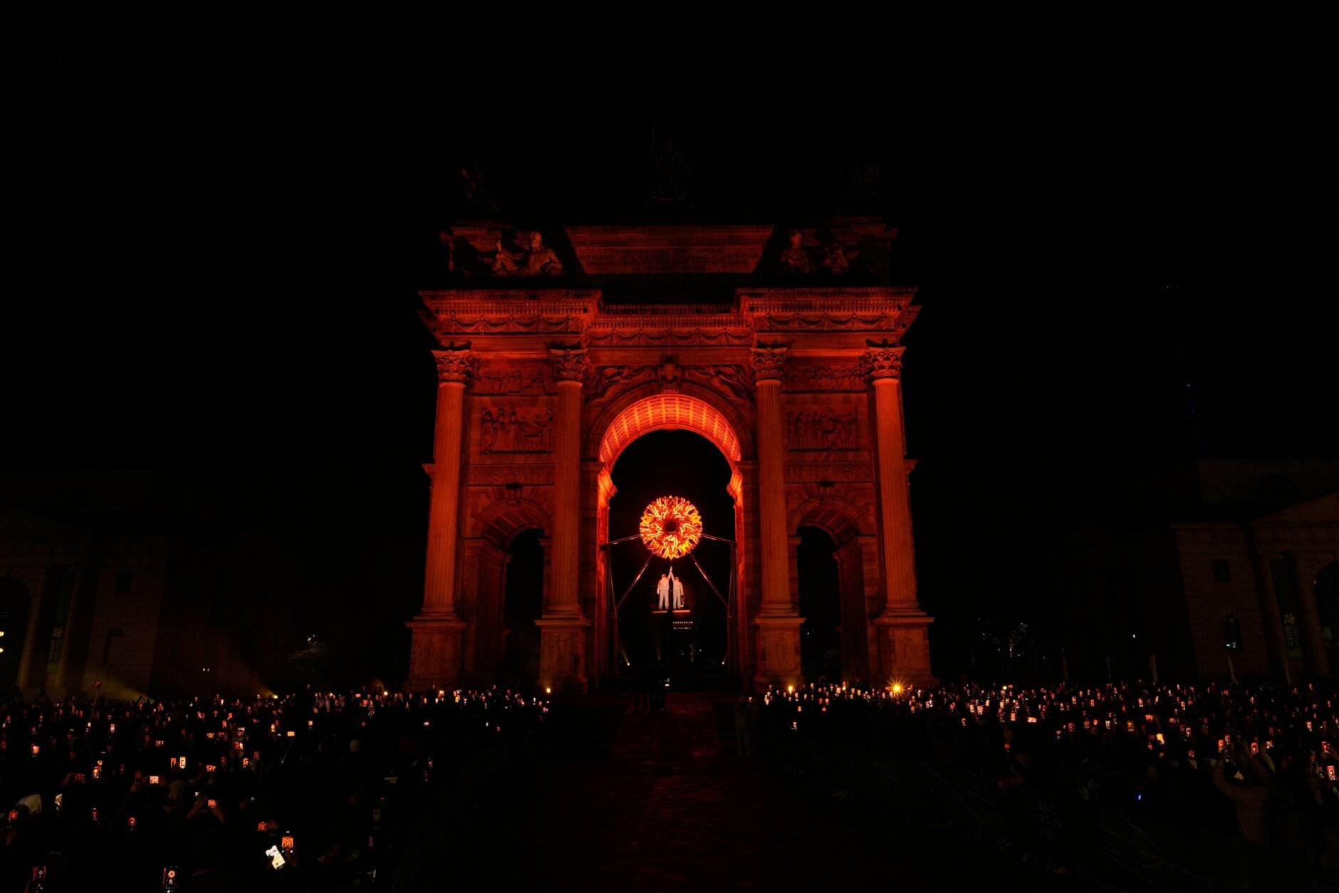 Soon, tenor Andrea Bocelli’s voice was belting out Puccini’s “Nessun Dorma” and its closing refrain of “Vincerò,” Italian for “I will win!” As he concluded, torch bearers headed out of the arena toward a cauldron at the Arch of Peace, 2½ miles (4 kilometers) from San Siro.