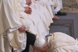 ROME (AP) — Pope Leo XIV washed the feet of 12 priests in the traditional Holy Thursday ritual, restoring a tradition his predecessor had broken by including laypeople and non-Christians in ceremonies at prisons, juvenile detention halls and centers for asylum-seekers.