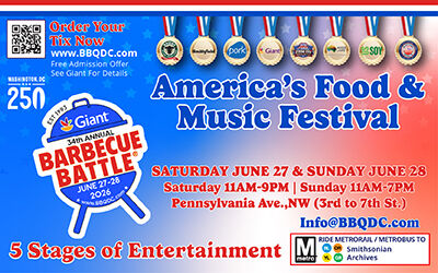 Get ready DC – to celebrate America’s 250th Birthday at the 34th Annual Giant Barbecue Battle, June 27th and 28th on historic Pennsylvania Avenue.